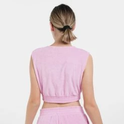 Φτηνός 🎉 Αμάνικα T-shirts Nuff Logo Γυναικείο Crop Top Pink 🔥